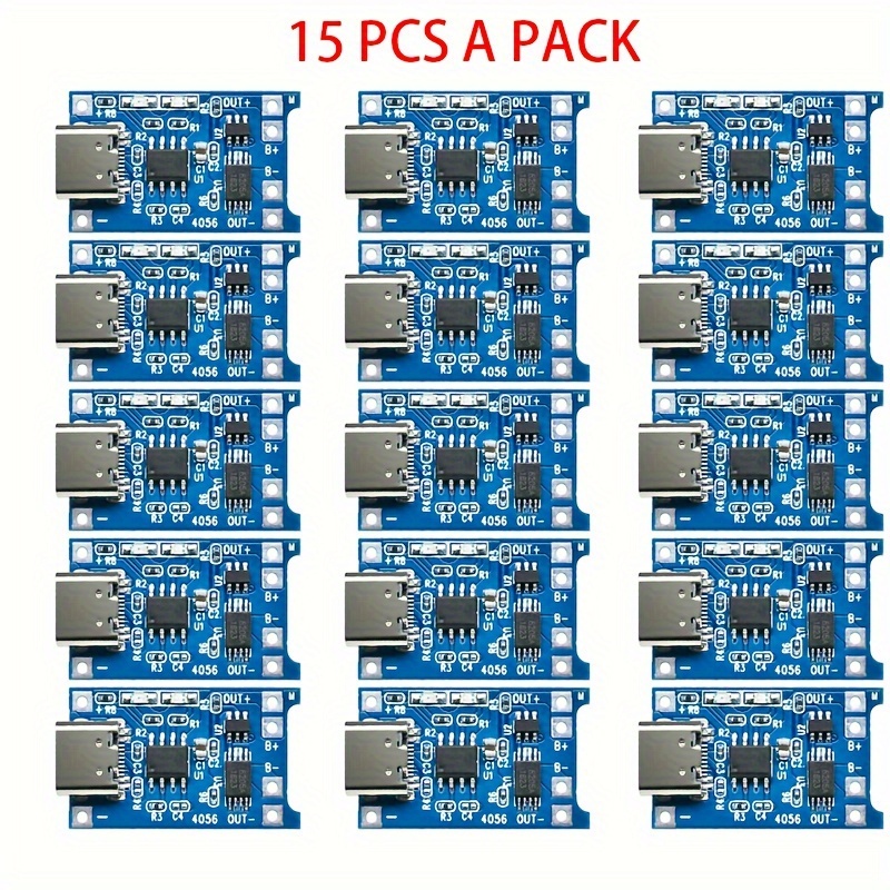 Electrónica15 piezas de placa del cargador de batería de litio con protección 5V 1A TP4056 módulo de carga tipo C USB 18650