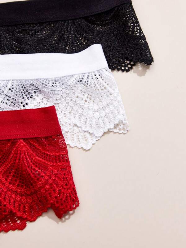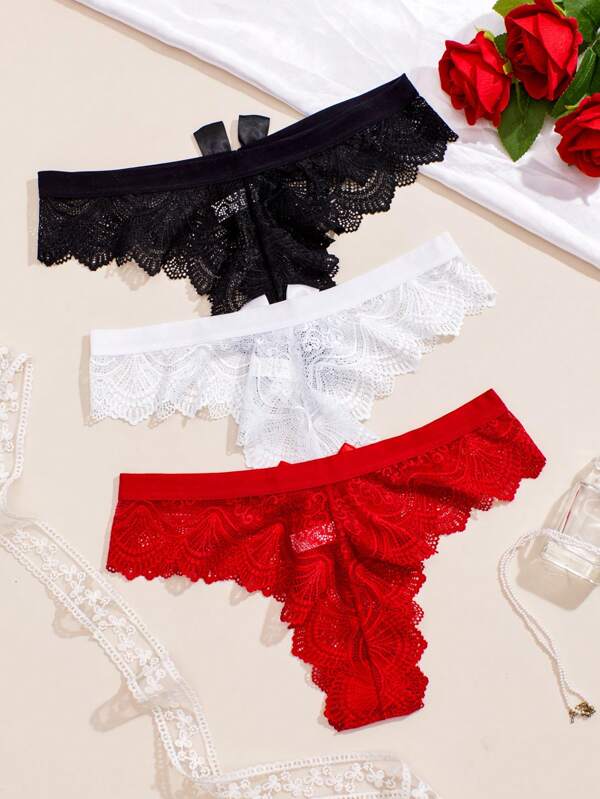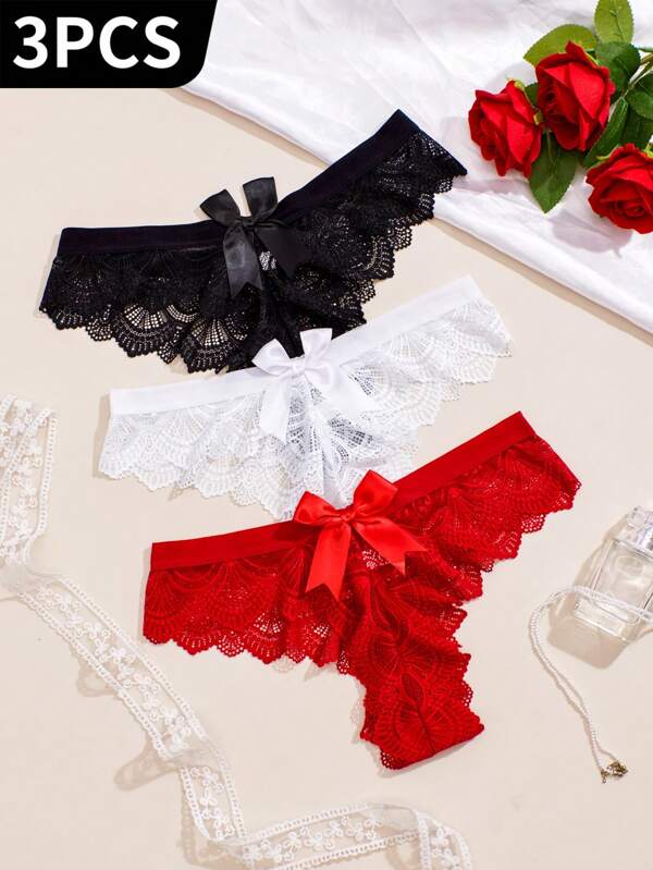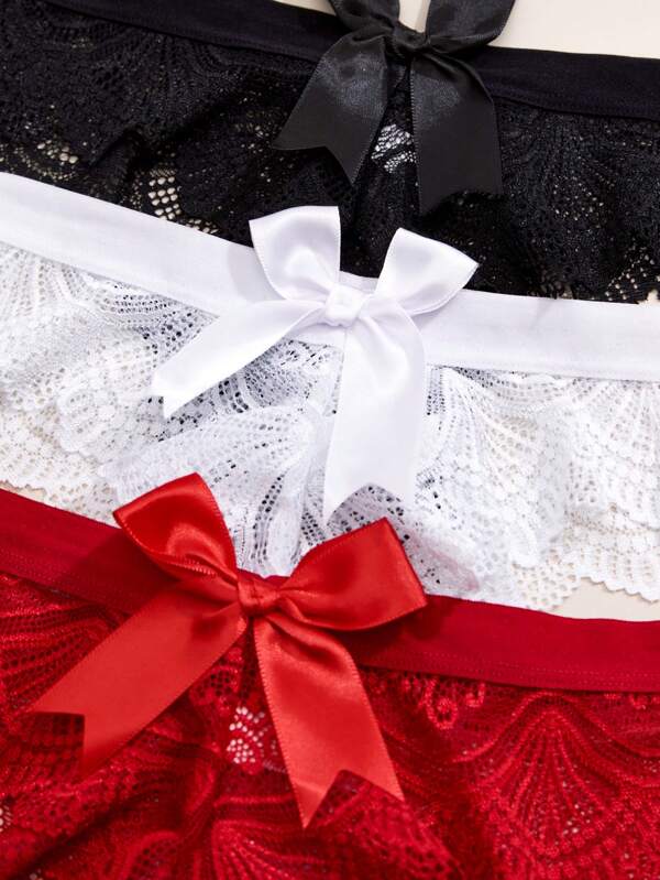 3 piezas/Set Bragas tipo tanga con lazo de encaje