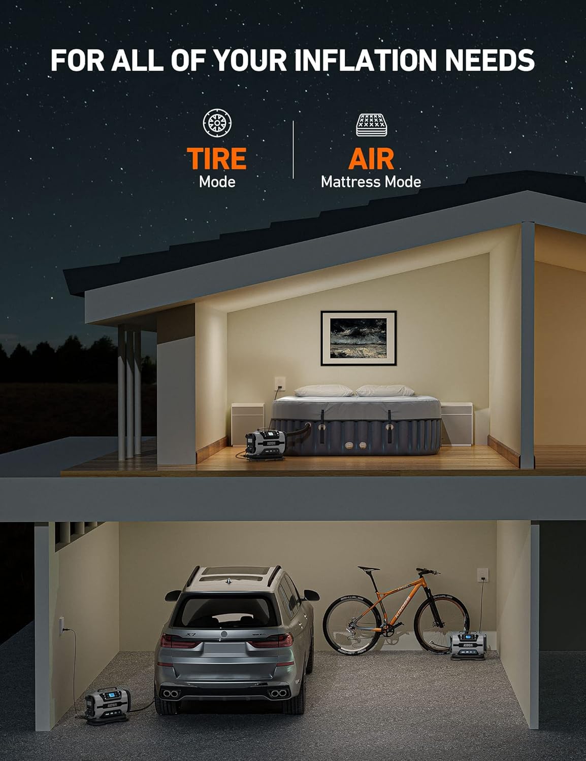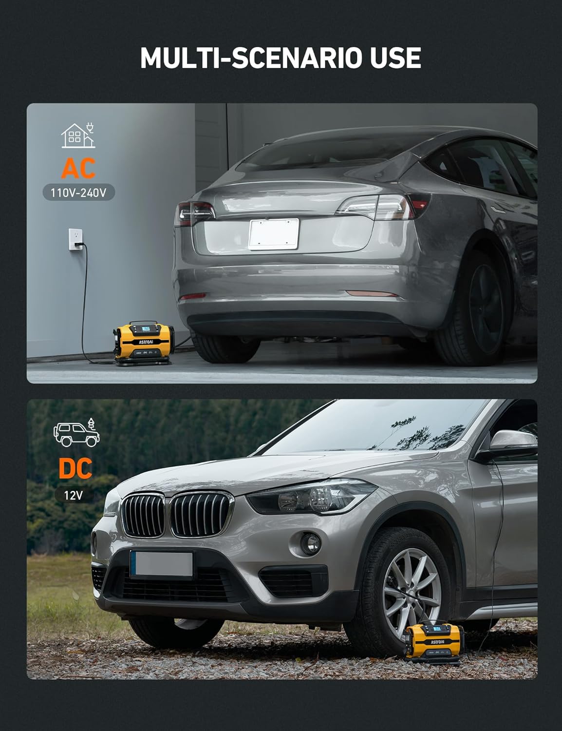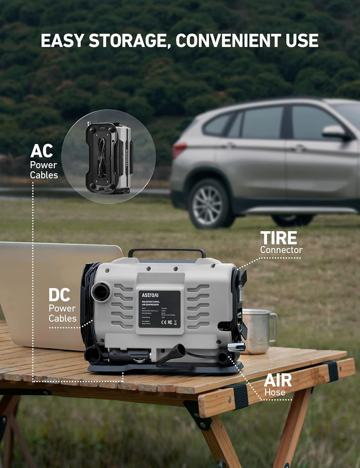 AstroAI – Compresor aire portátil, inflar neumáticos,150 PSI, 12 V CC, 110 V CA
