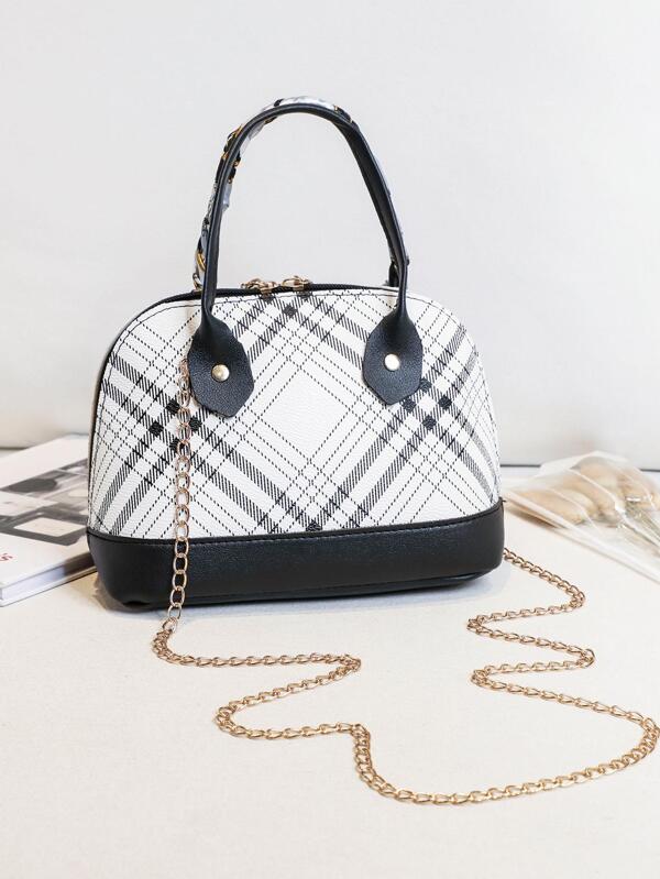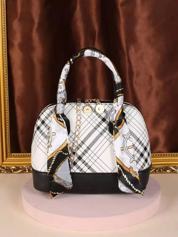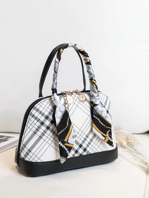Bolso de cúpula con patrón de cuadros Decoración de bufanda