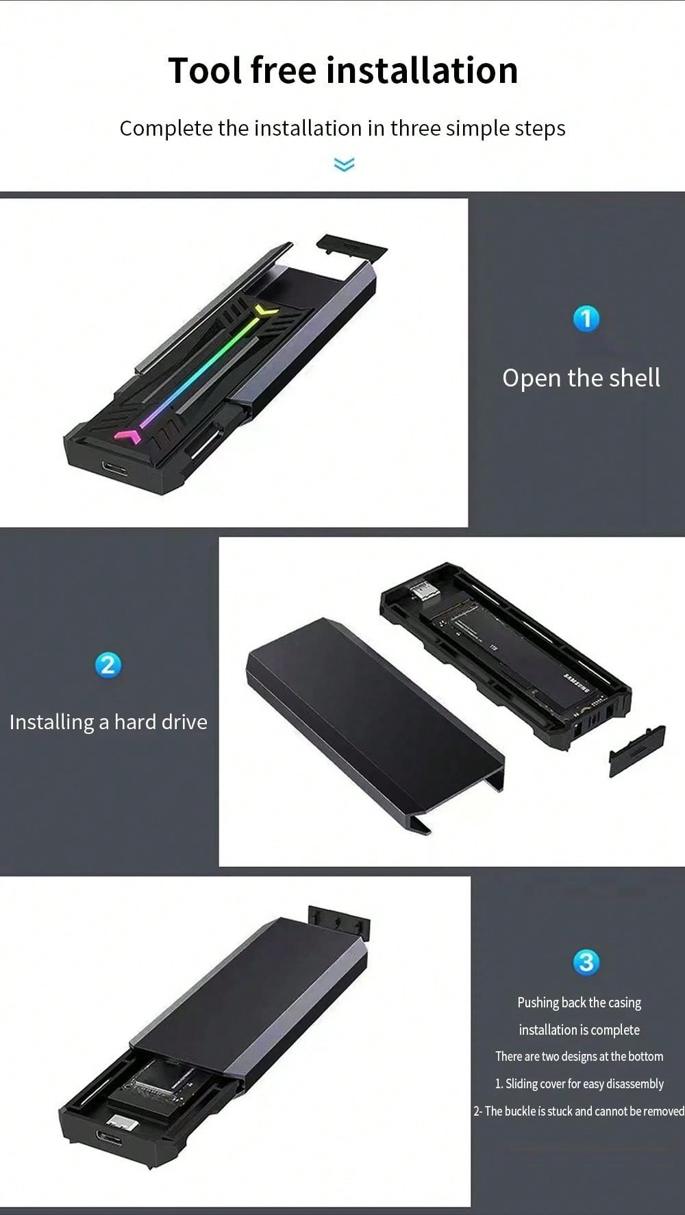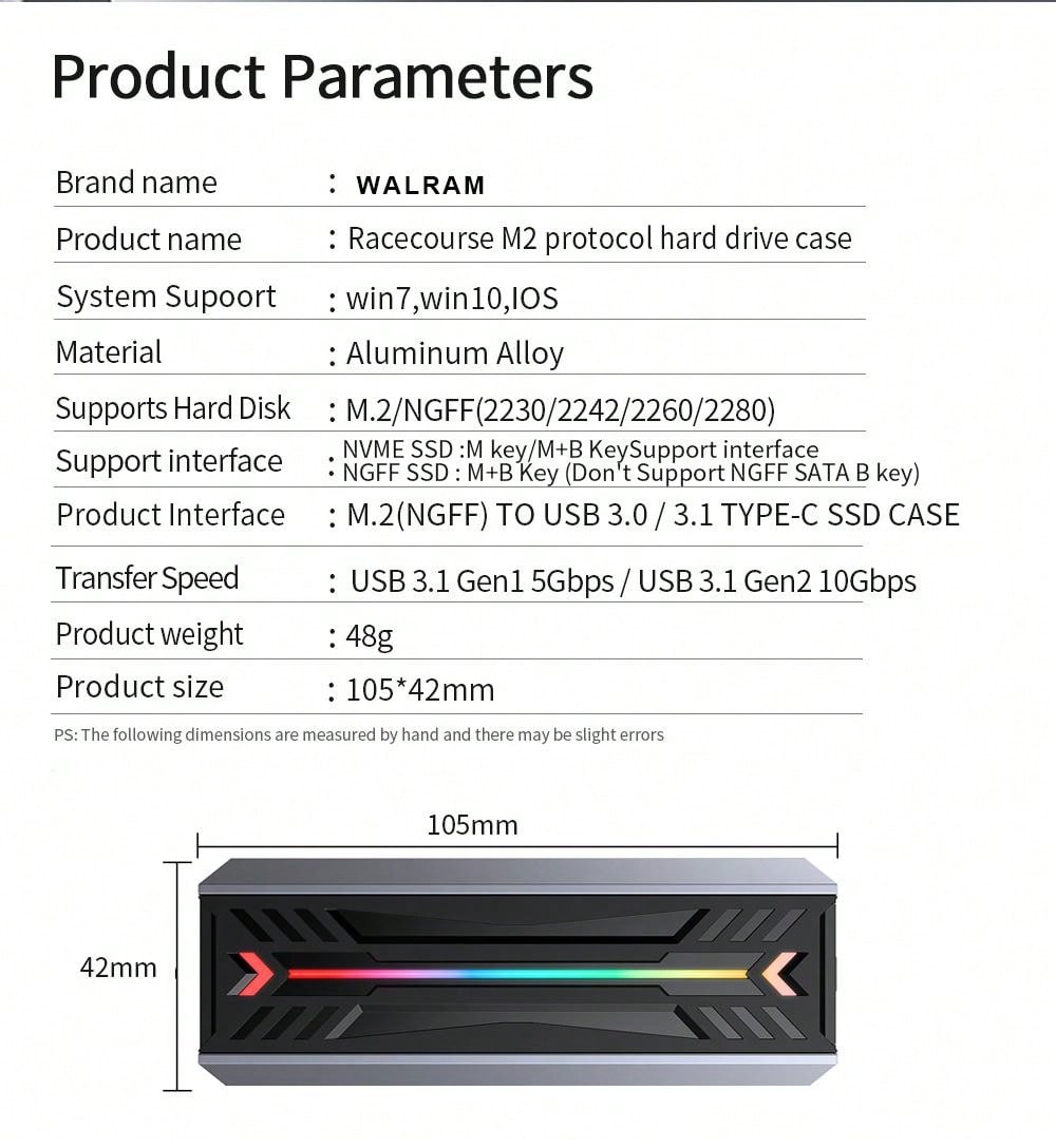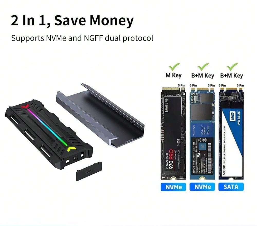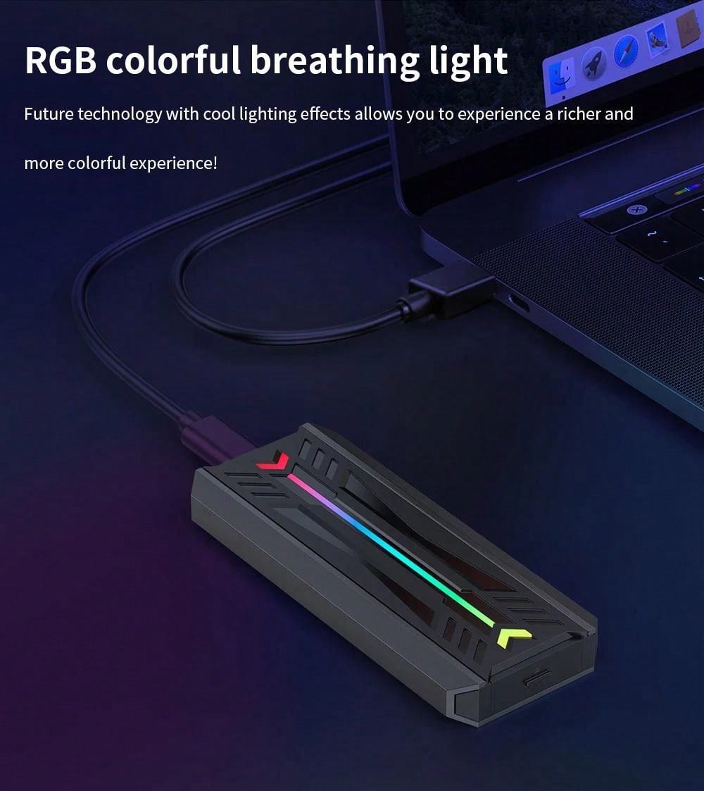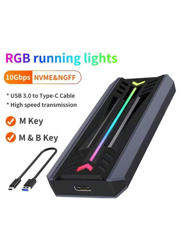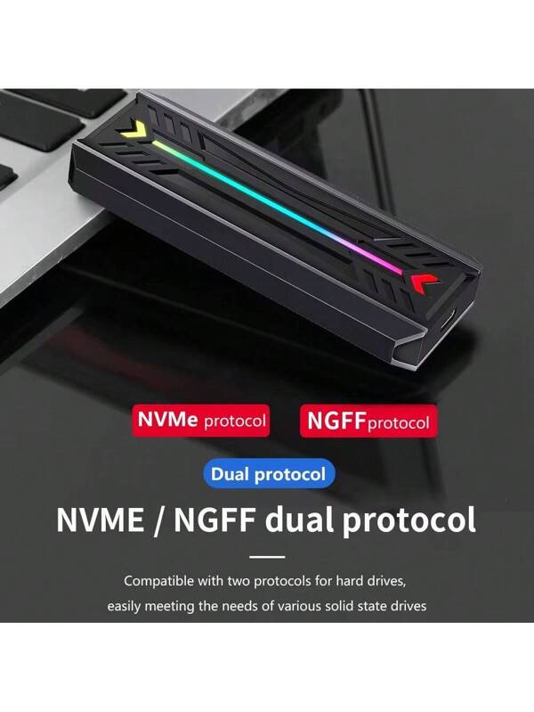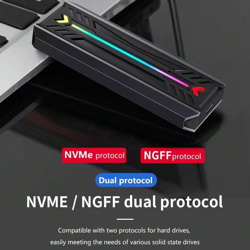 Protocolo dual, carcasa SSD M.2 NVME con marquesina RGB, USB 3.1