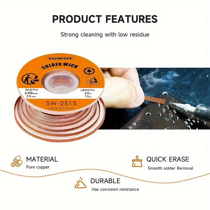 ElectrónicaCinta de mecha de soldadura TOWOT con flujo electrónico sin limpieza