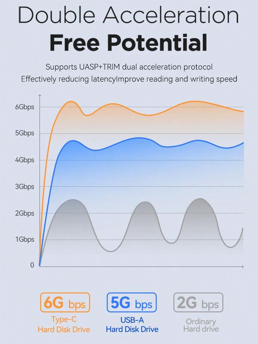 Case Tool-Free Clear Hard Disk CaseFor 2.5 Inch SATA HDD SSD Max 6TB Support UASP (No HDD SSD)