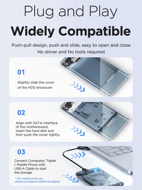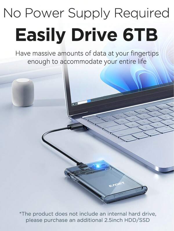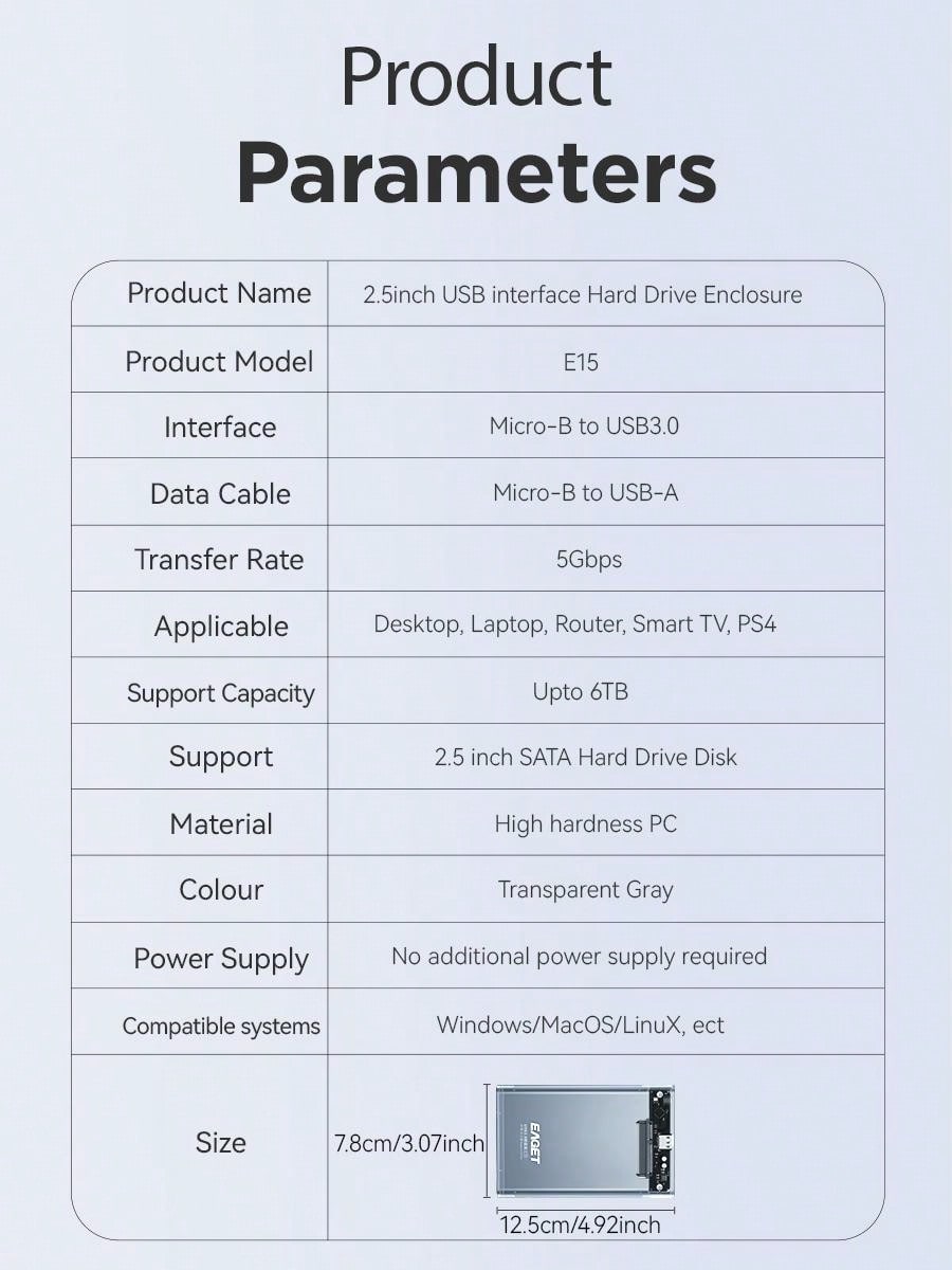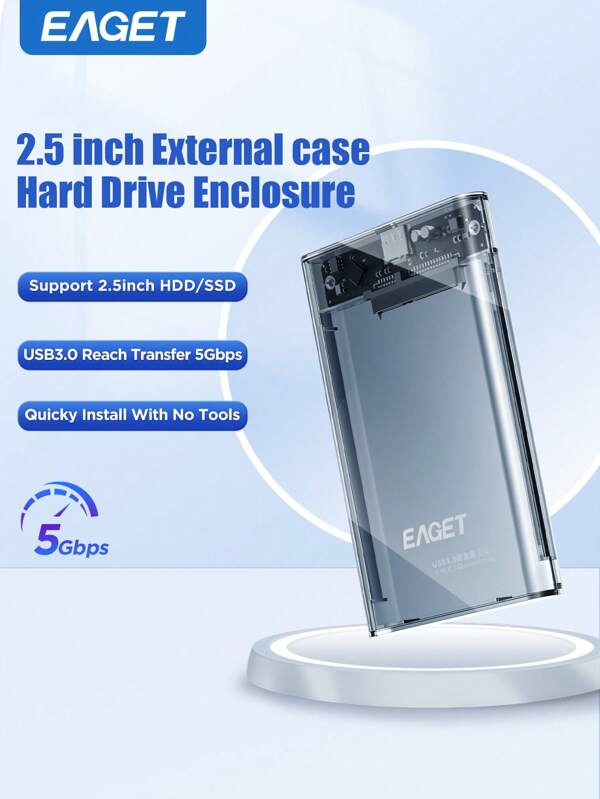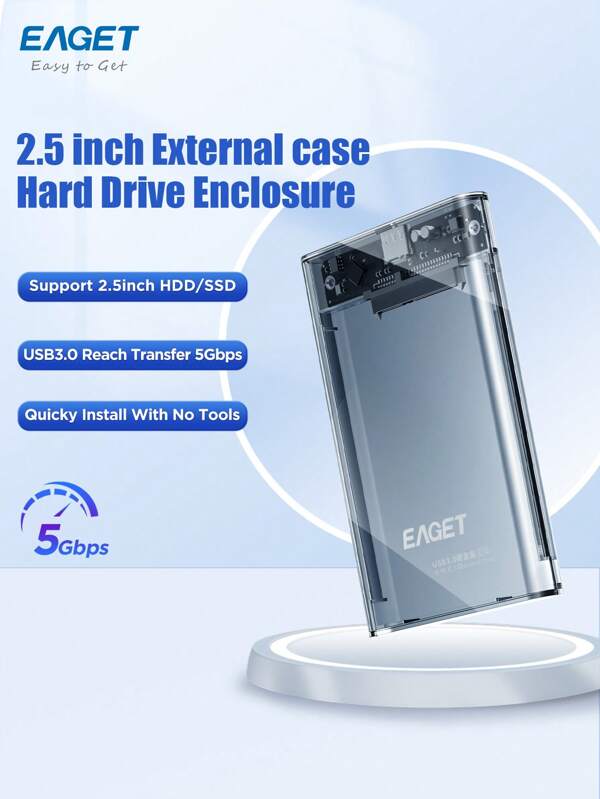 ElectrónicaEAGET 2.5” External Hard Drive Enclosure USB 3.0 To SATA III Hard Disk