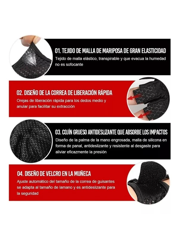 Guantes de gimnasio, 1 par, para levantamiento de pesas