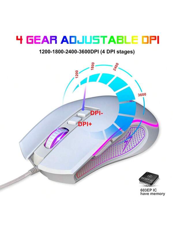 Ratón óptico ajustable para juegos de oficina de 3600 DPI para hogar y trabajo