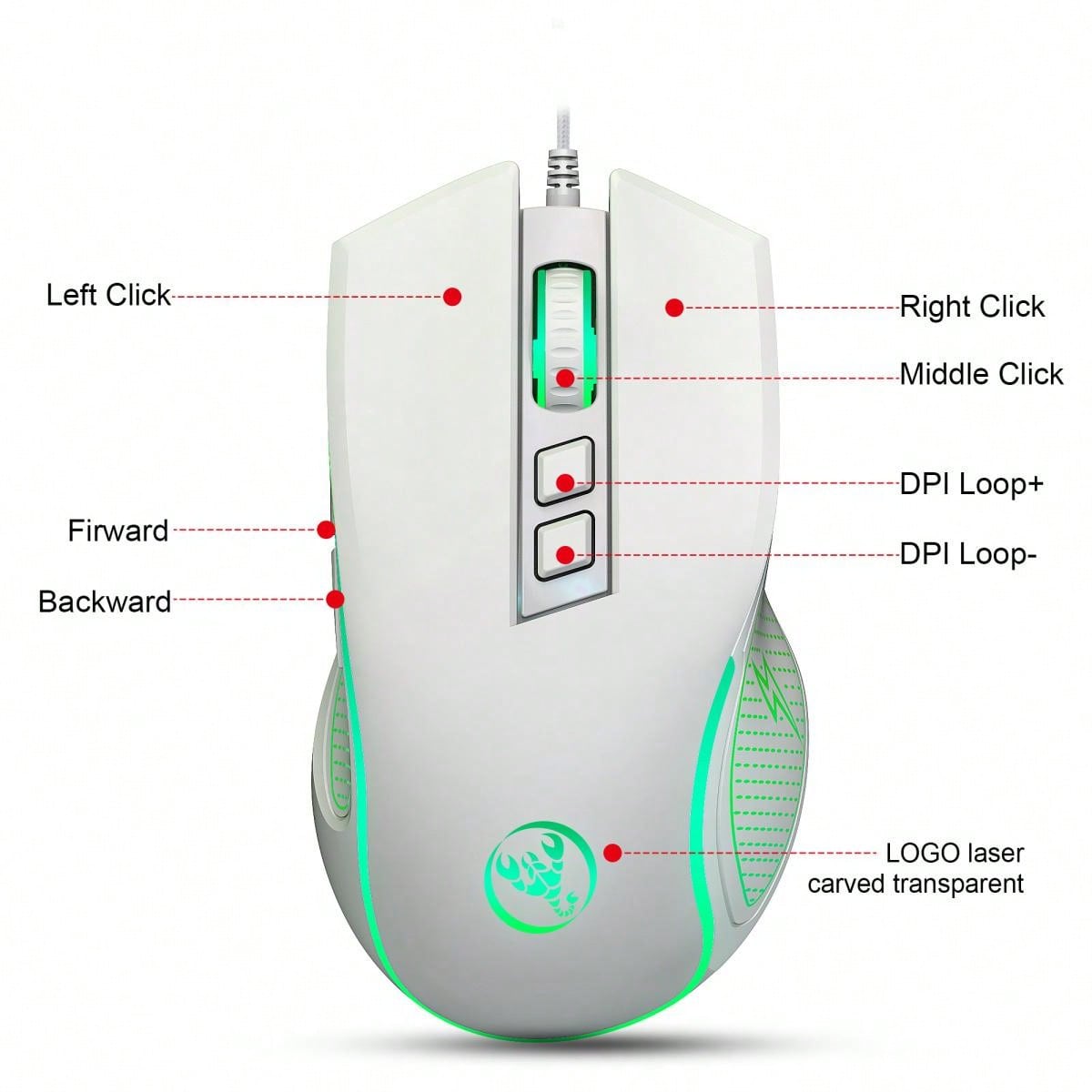HXSJ Ratón USB con cable con retroiluminación de colores