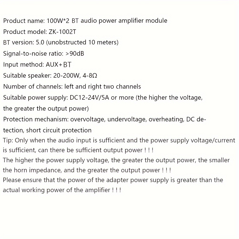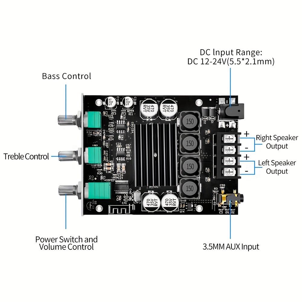 ElectrónicaPlaca de amplificador de audio estéreo dual de 100W + 100W con entrada inalámbrica y AUX