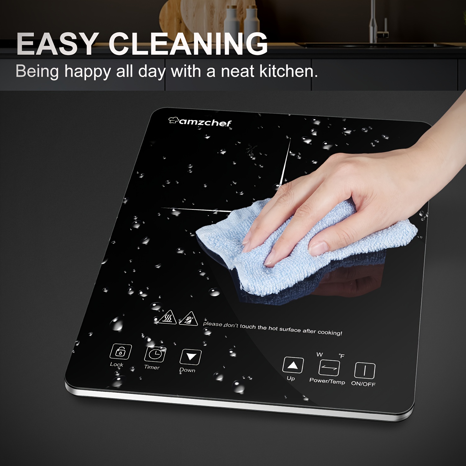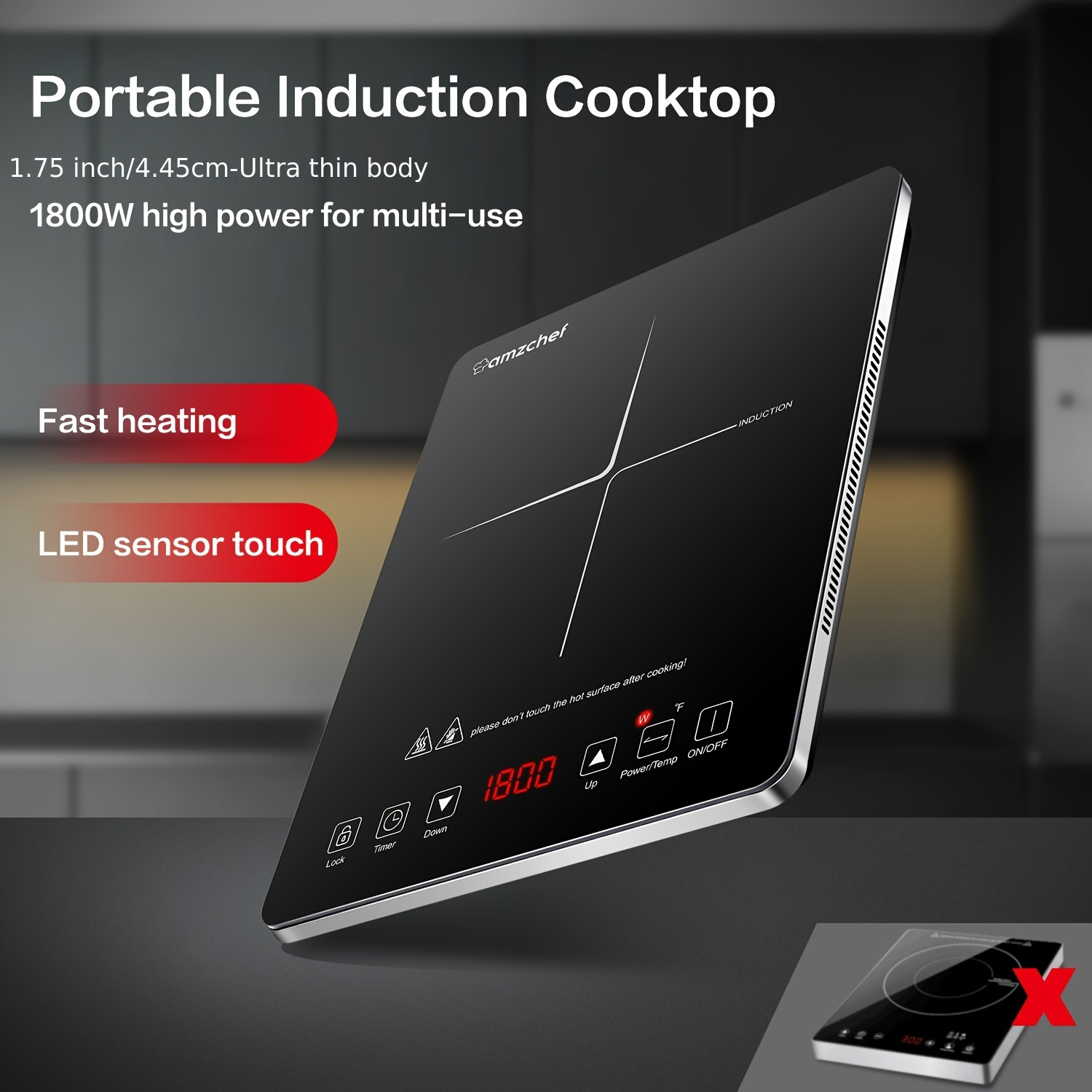 Placa de Inducción Portátil AMZCHEF 1800W Quemador de Estufa de Inducción con Cuerpo Ultrafino