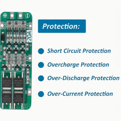 Placa de Protección de Batería de Ión de Litio 3S 20A de Alto Rendimiento con Recuperación Automática – Ideal para Baterías 18650 y de Litio Polímero, Compatible con Taladros Eléctricos de hasta 65W