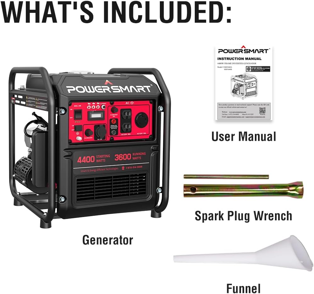 PowerSmart Generador inversor alimentado a gas, 4400 W 120 V de potencia