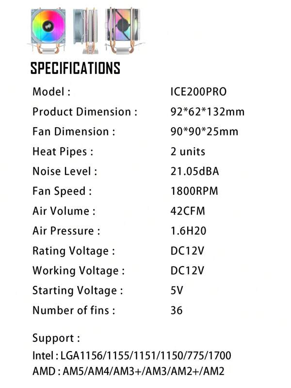 Refrigerador De Aire De La Cpu De Aigo Ice200pro 2 Tubos