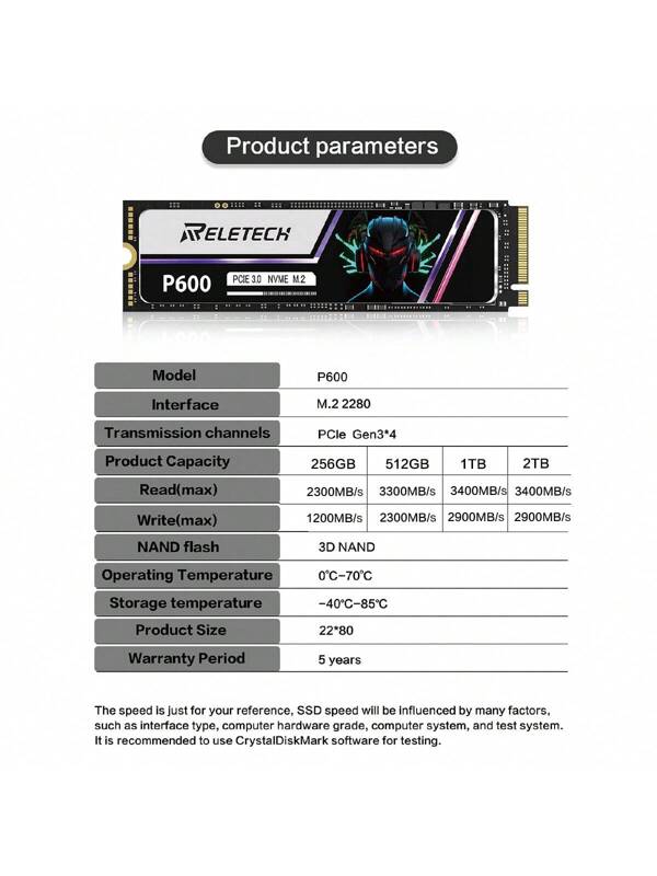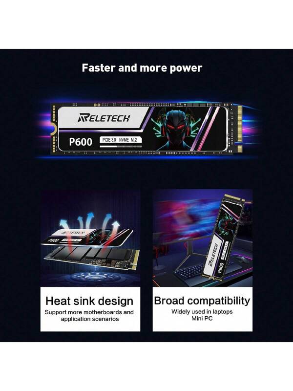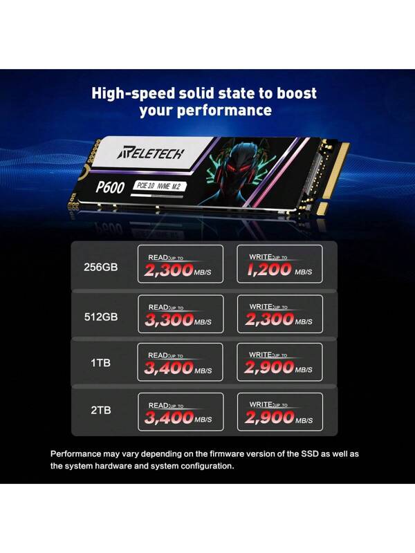 Reletech Disco duro M.2 SSD NVMe PCIe Gen3,0X4 unicolor para 512GB/1TB/2TB