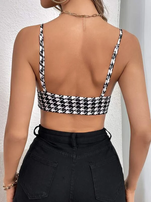 SHEIN Privé Top de tirantes crop con estampado de pata de gallo