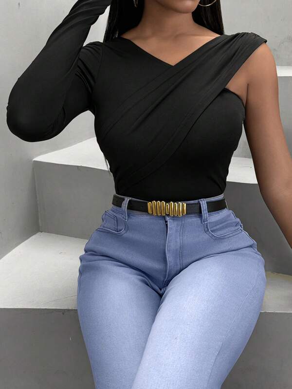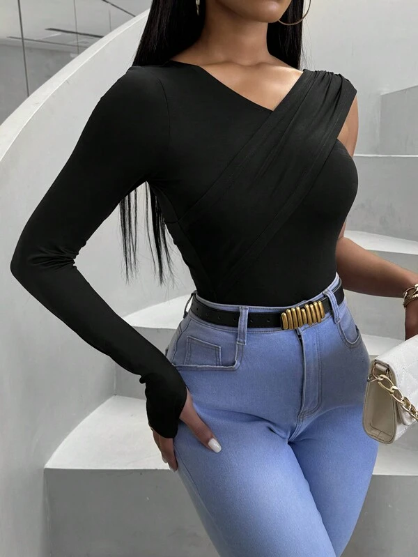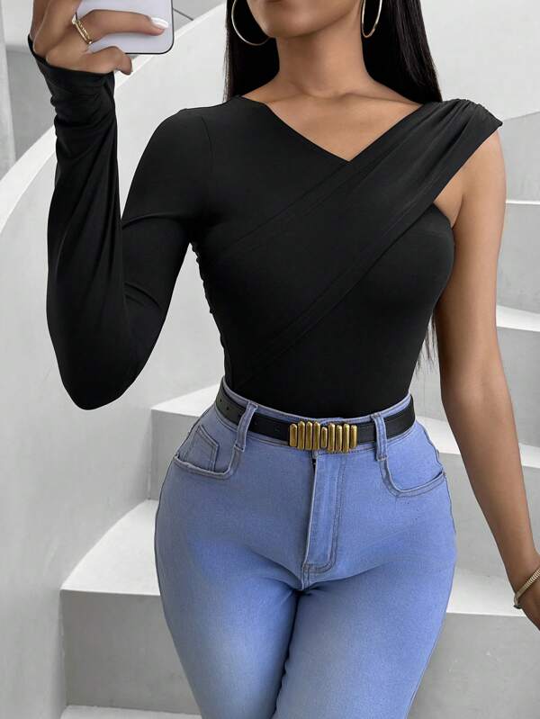 SHEIN Slayr Camiseta De Señora Entallada Con Cuello En V