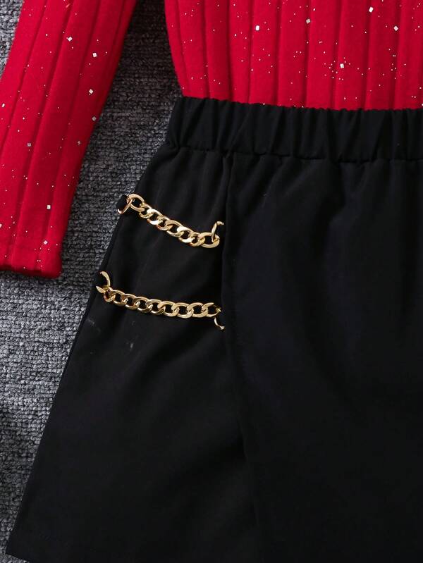 SHEIN Young Girl And Young Girl 2pcs/Set Casual Street Chic Short