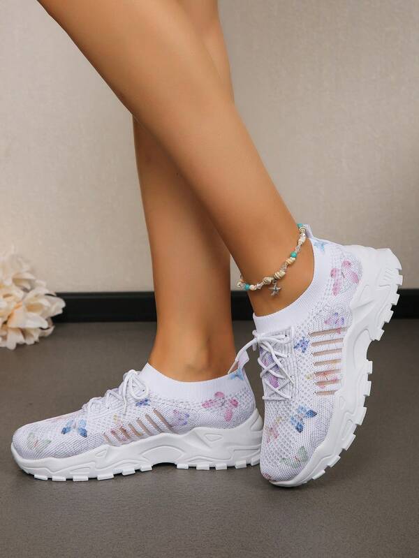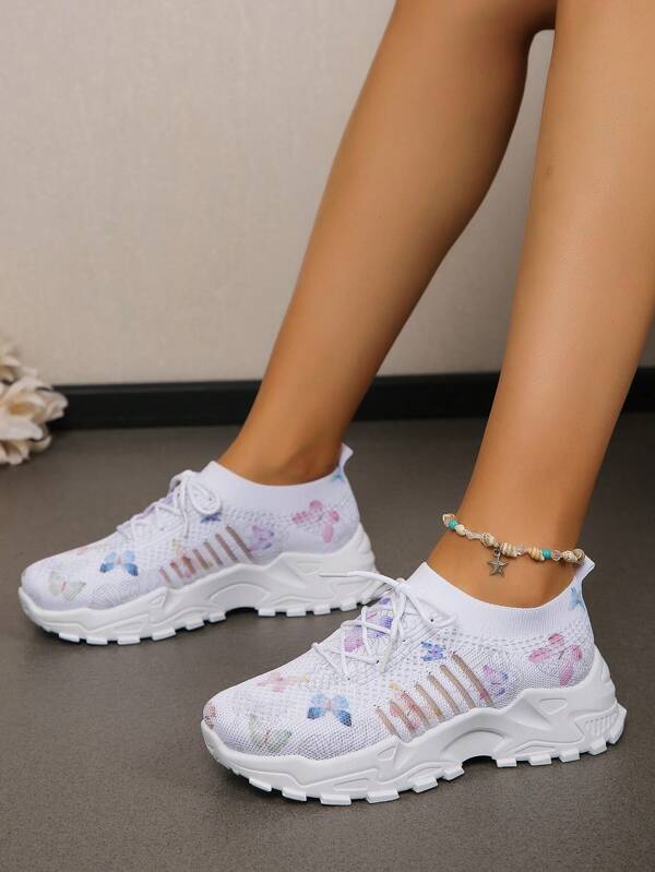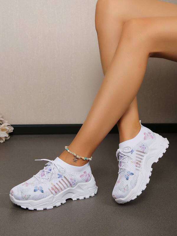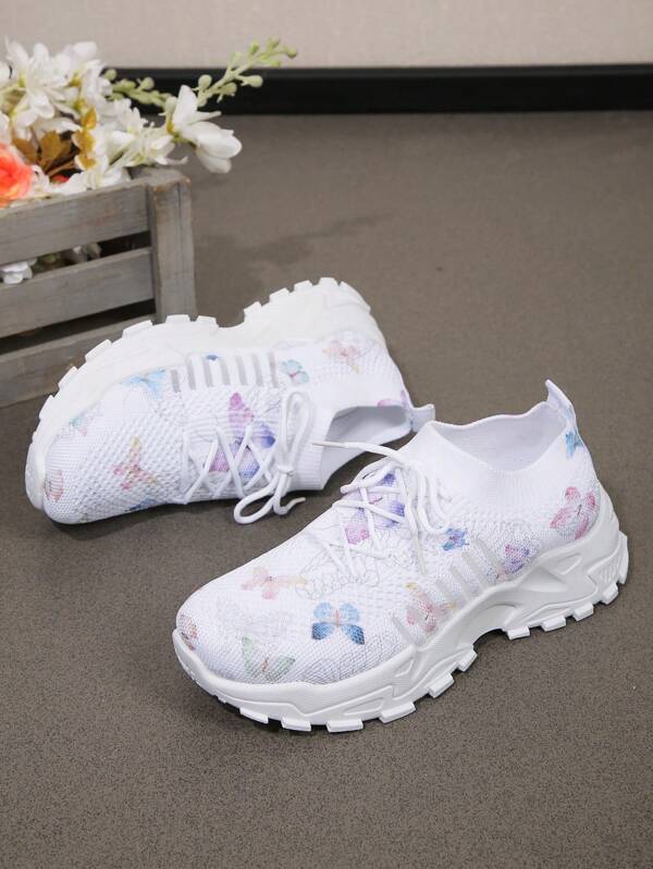 Butterfly Thick Bottom Sports Shoes, Breathable Slip-Resistant All-Match Running Shoes