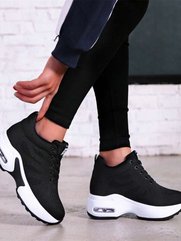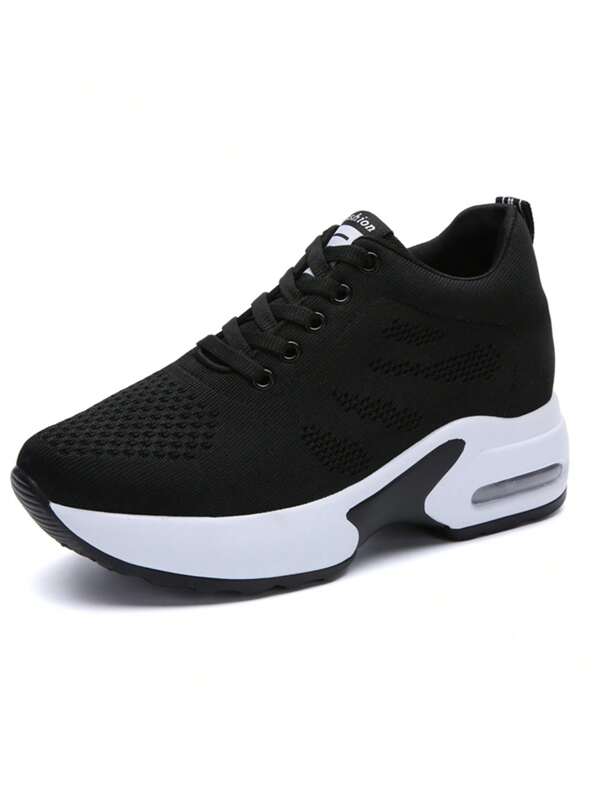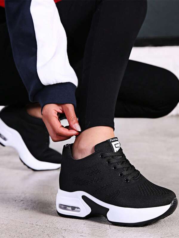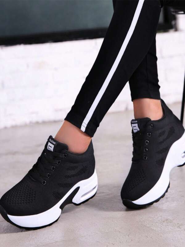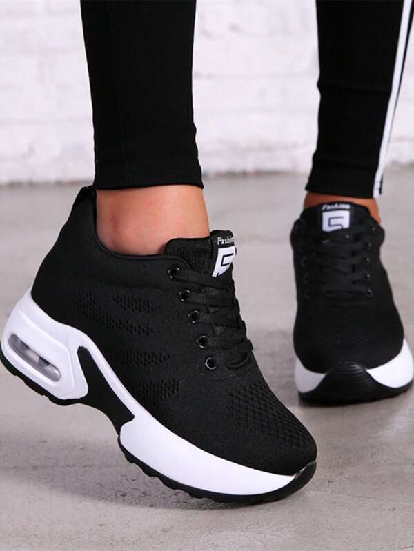 Women Letter Patch Decor Lace-up Front Wedge Sneakers-Not Finished