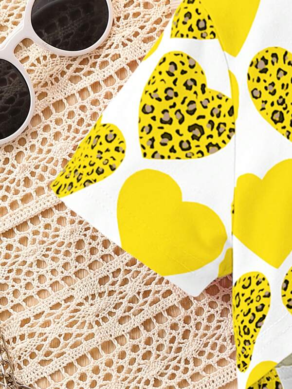 Young Girl Casual Cute Simple Heart Round Neck Short